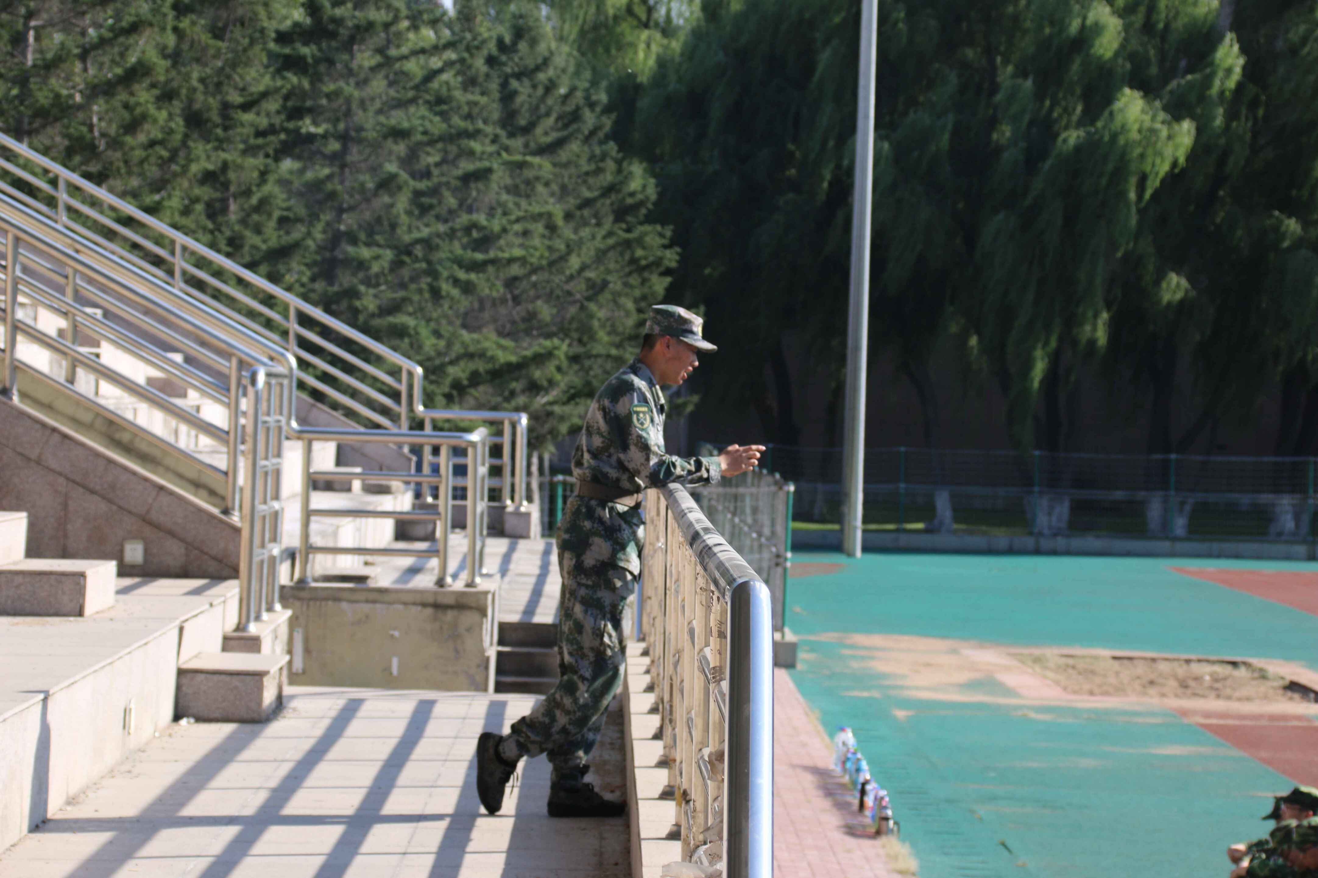 为了更好地保持新生的身心健康,使军训训练松弛有度,加强新生爱国意识,材料学子于训练的空闲时间在田径场学习唱军歌。