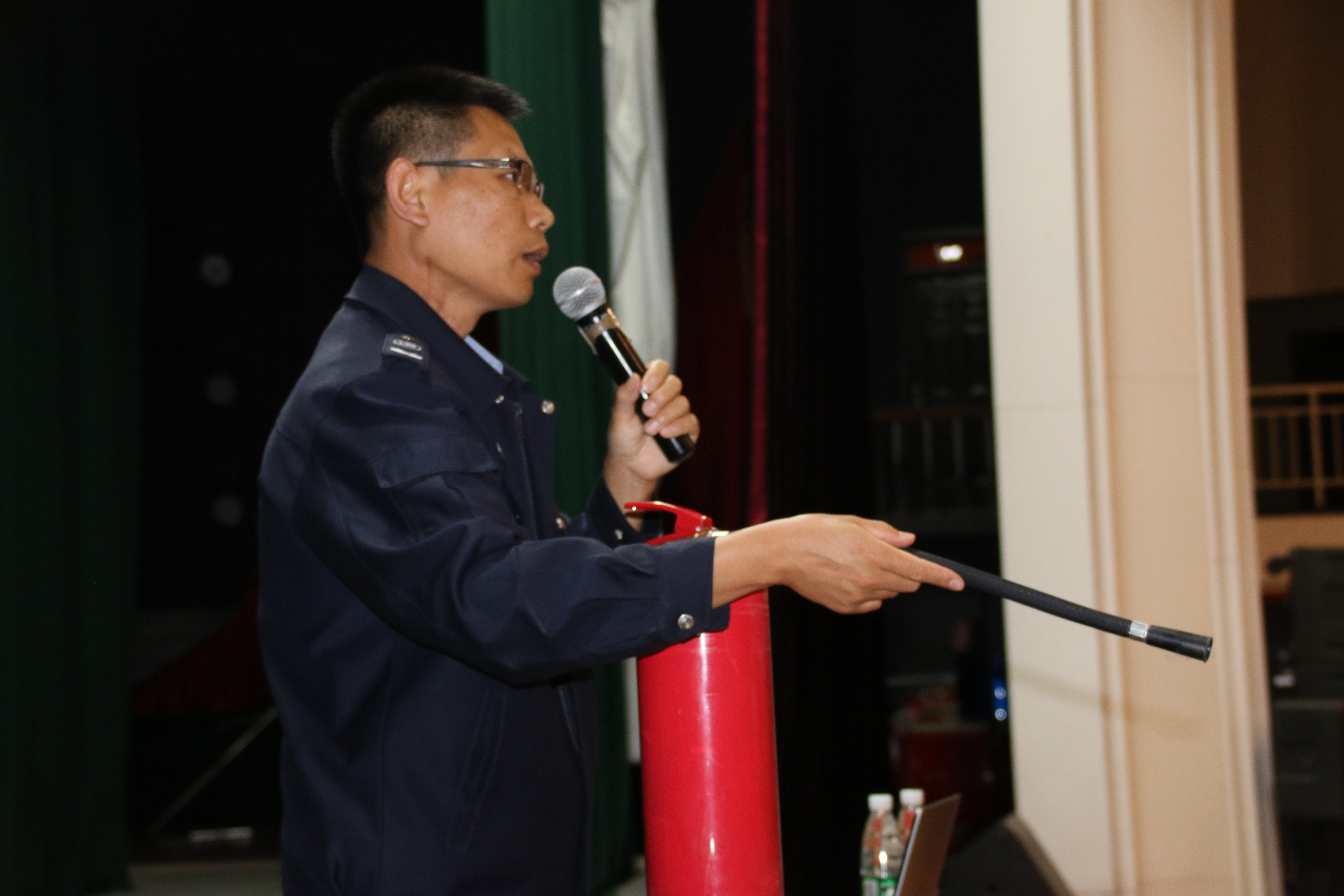随后,老师还强调了防火的重要性。在讲座期间,老师现场新生展示灭火器的正确使用方法。他向同学们说明了关于学校禁止使用的违章电器的种类,以及学校对于违章电器使用的惩罚制度。