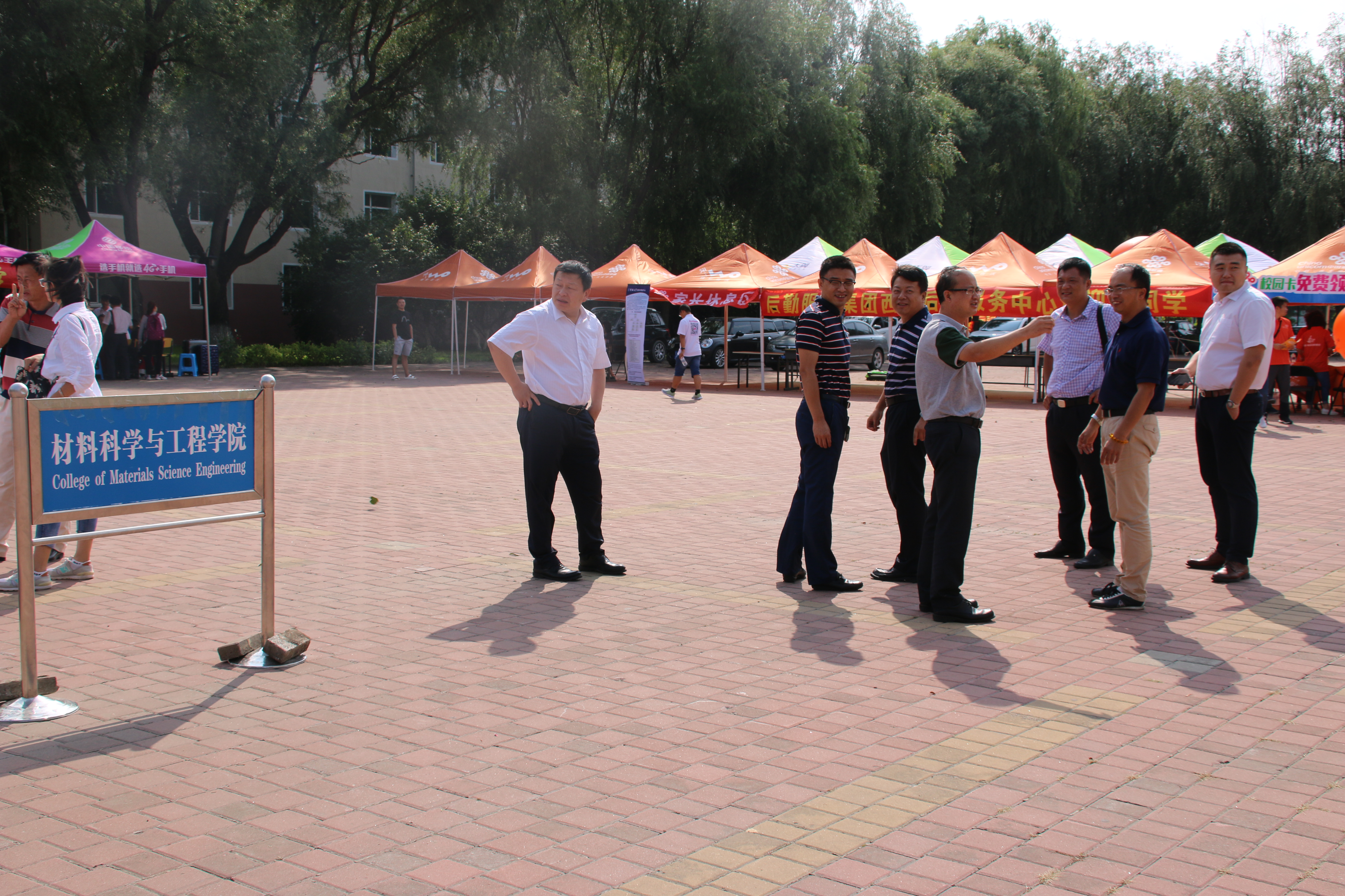 下午三点学生工作部部长张国兴,保卫处处长宫皓宇校办副主任张伟几位领导莅临迎新现场由西区学生办公室主任邵俊涛和材料科学与工程百家乐在线 2017级辅导员杨超老师进行接待并陪同视察迎新工作并对工作中不足了建议。随后领导们参观了迎新现场并对工作人员的努力表示了肯定,调动了大家积极性。