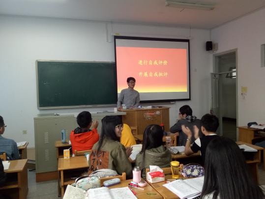 2014级各班同学在逸夫教育大楼召开了以“学习总书记讲话,做合格共青团员”为主题的团组织生活会。