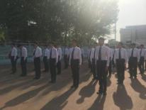 每天早上630分,在操场上同学们昂首阔步,精神饱满,每一个动作都力求标准,每一声口号都振奋人心不稳不熟练的齐步走正步走端腿动作,到整齐划一的步伐,同学们仔细聆听着工作人员的教导,不断地在错误中学习,不断超越自己。在日复一日的辛苦训练中,尽管双臂双脚都十分酸痛,同学们仍保持着良好的精神状态,没有显露出丝毫懈怠的情绪,他们继续将振奋的精神和昂扬的气势贯穿训练始终。